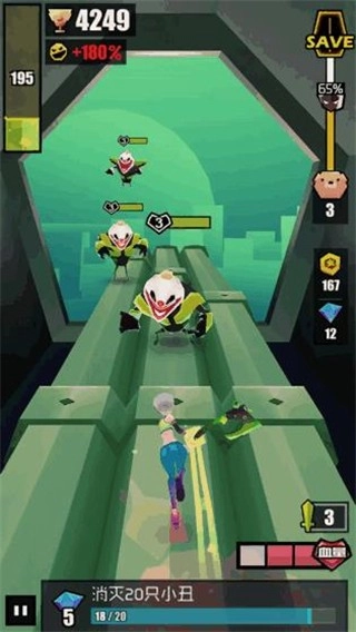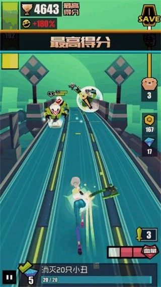 游戏里加入了战斗相关的动作元素,玩家不仅要避开固定的障碍,游戏中的怪物还能发起攻击,而且游戏设定遇到怪物时无法躲避,必须正面迎战。玩家需要做的不再是单纯地躲避,而是要勇敢地去攻击和击杀各种怪物。