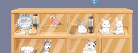 4、将鹦鹉放在第二个有树枝的柜子里,龙猫放进第三个柜子,龙猫在兔子窝里。