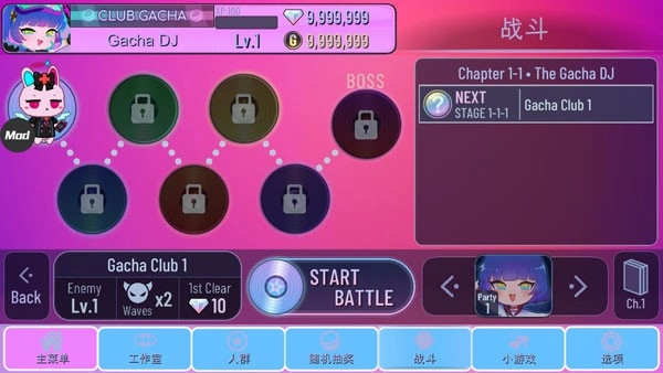4、您也能玩自己喜爱的迷你游戏,通过Gacha收集宝石与字节,从而获取更多单位!