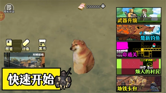 3.图鉴罗列着游戏里的全部物品,战备呈现你当下的装备资源,黑市中你能够花钱购置强力的武器。