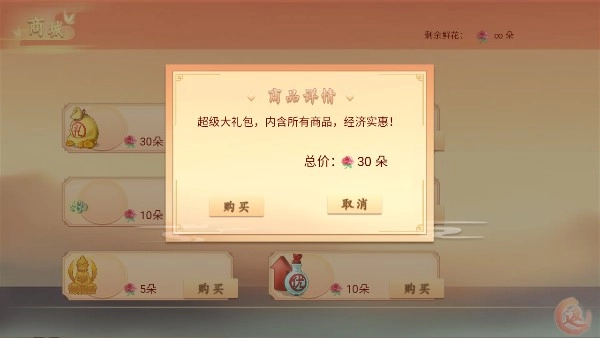 3、接着我们可以看到无限鲜花的效果已经实现了,接下来需要先购买一系列道具,如此便能体验到完整的游戏内容。