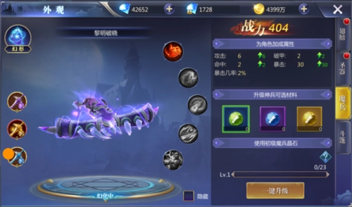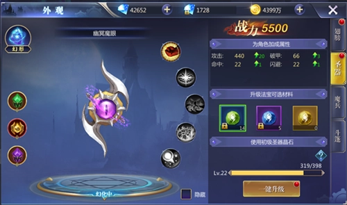 2、 激活后,使用道具可对魔兵进行升级,升级可增加属性和战力