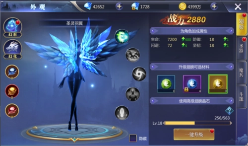 3、翅膀等级越高,激活的翅膀技能也会越多