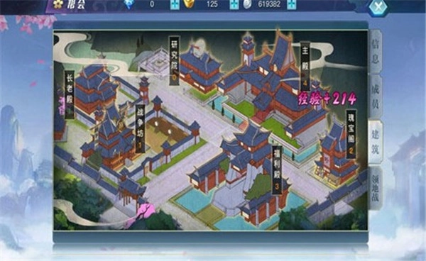 帮会是玩家自主创建的团体,帮主作为团队领袖,带领帮众一同完成升级修炼。首先,在帮会玩法界面里,玩家能看到信息、成员、建筑、领地战这四个主要选项。在信息栏中,玩家可以查看自己所在帮会的基本信息,还能看到帮主建会时写下的宣言、注意事项,以及帮会最新的新闻动态。成员列表中,玩家能了解到各成员的基本信息,还可以发起好友申请和对话,这自然也是“抱大腿”的好去处~在建筑列表里,玩家不仅能看到当前公会的升级情况,还能在“研究院”中提升自身属性能力,在“瑰宝阁”里购买稀有的强化道具。领地战,从名字就能知道,是公会之间的战斗,通过激烈争夺来确定各地区的归属帮会,拥有领地越多的帮会,能给成员带来的好处就越大~当然啦,在帮会里钱并非万能,“帮会工资”和“帮贡”才是最关键的东西,这些都需要玩家为帮会做出贡献才能获得~