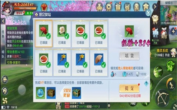 帮会作为一个大型团体,物资消耗自然十分庞大,因此需要帮会成员共同承担收集物资的重要责任。玩家可以在“活动”界面接取帮会贸易任务,根据任务给出的物品列表收集相应物资并完成填充,不仅能获得丰厚的经验和银币,帮贡也会一并到手~要是把所有物品都填充完毕,还能额外领取贸易宝箱呢!