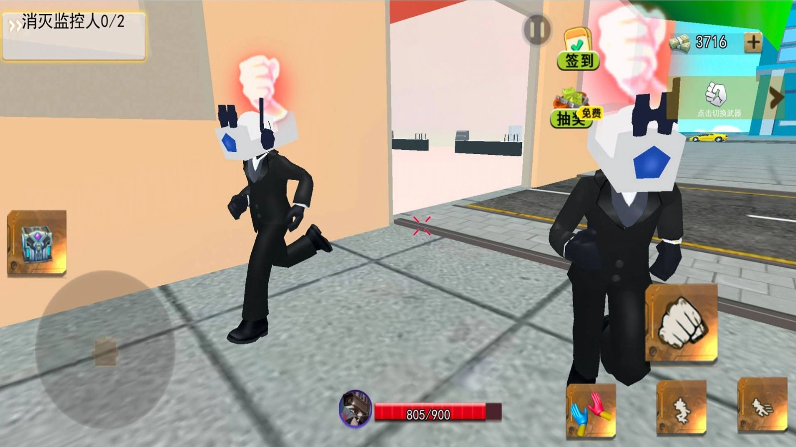 1、秀出你的格斗本领,运用拳击、踢腿以及特殊技能,和马桶人展开一场激烈的战斗;