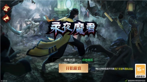 1、在永夜魔君游戏中点击选区,选择区服进入