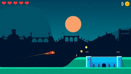 1、红色爱心血量为起点,在灵活操作下飞跃困境。天空圆月照耀,前行道路更佳坚定。加速飞行斗争,来完成新的闯关征途!