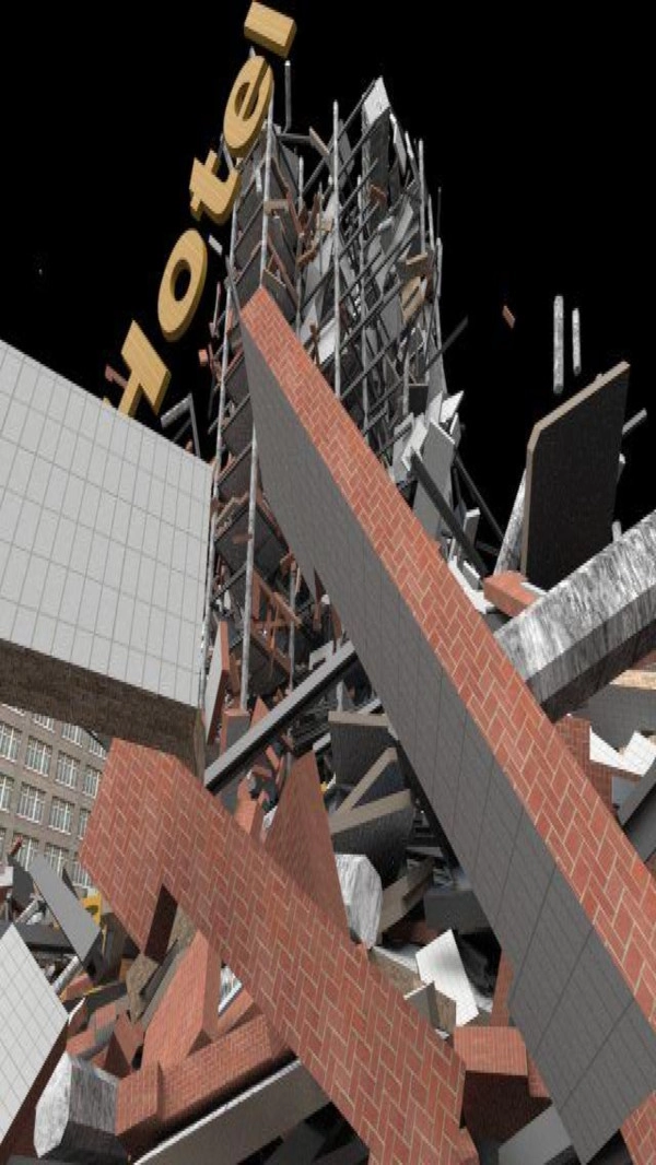 拆除模拟借助了一个依托三维图形引擎的真实物理与布偶引擎。炸弹由TNT、RDX及其他材料制作而成。塔内的爆炸破坏了地基,导致塔身倾倒。
