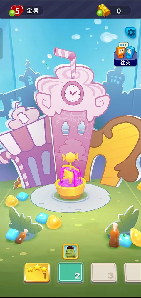 1、独特的糖果组合机制,借助多样化的消除操作来生成如果冻鱼、五彩糖果这类强效道具。