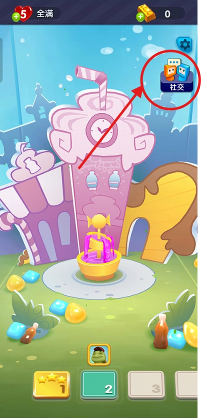 1、进入到游戏的关卡选择页面,在右上角有一个社交,点击社交进入。