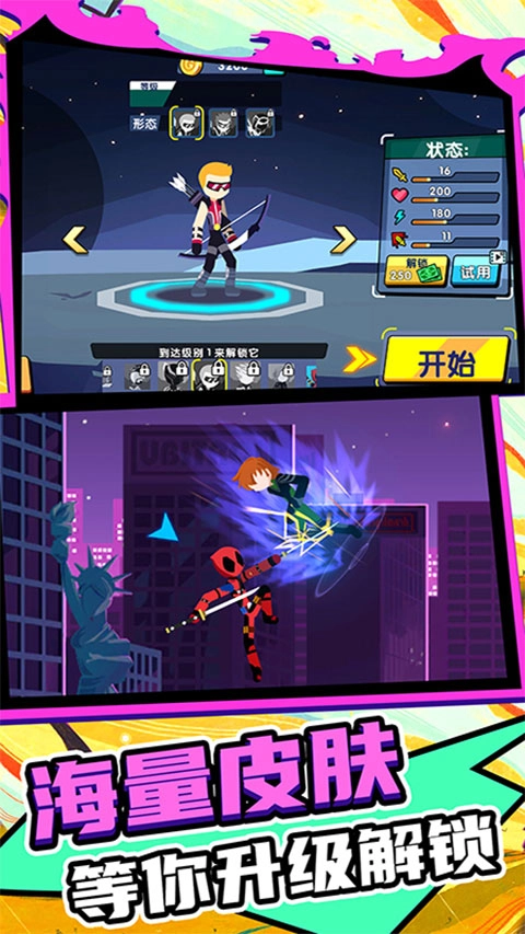 4、可以灵活控制火柴人,开始惊心动魄的冒险。这的确是一次无与伦比的打击经历。