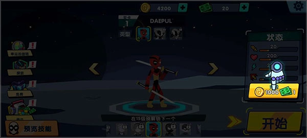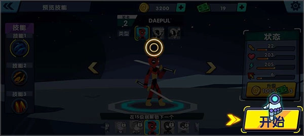 1、安装好火柴人王者2,进入游戏,点击开始游戏。