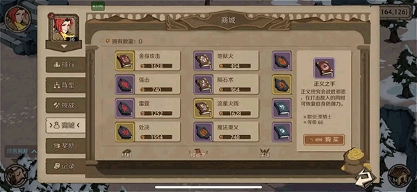 大家可以看到,上面展示的是擂台赛可兑换的高级材料、高级技能书和专属英雄角色,这些都需要用勇者金币来兑换。勇者金币的获取主要取决于PVP段位,这就要求玩家积极挑战其他对手。要是前期战斗力偏弱,不妨每天简单打一局,通过积累积分排名来获取金币,慢慢攒起来也很可观。而且,坚持参与PVP还能提升角色战斗力,冲击更高段位排名,从而获得更多勇者金币。另外别忘了调整队伍阵型,搭配出更强势的阵容,这样能增强防守能力——毕竟排名高了,别人会仔细研究你的阵容,把你当作目标来挑战呢!