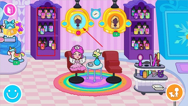 2、左右滑动屏幕能够切换房间内的不同场景,还可以移动公主的位置;点击衣柜中的衣服就能为公主更换装扮;点击左上角的箭头则可以切换至其他场景。