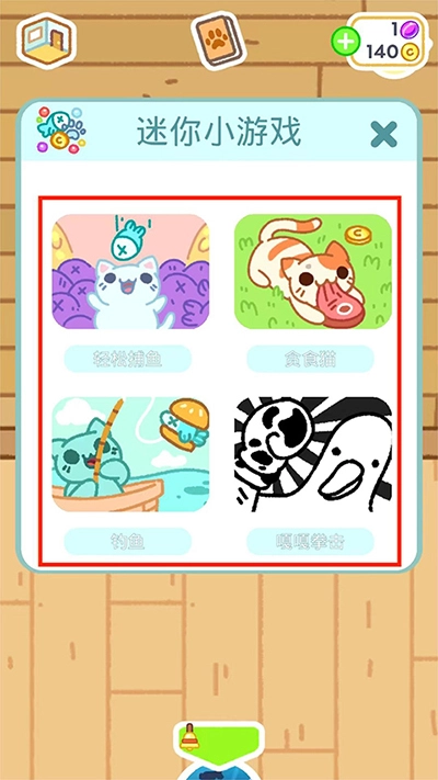 8、进入相册界面,选择【迷你小游戏】,这里有四种小游戏可以体验,并且还能赚钱额外的金币;