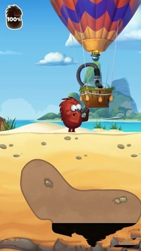 4、屏幕左上角会显示小怪物吸收石油的进度,等进度条填满后,热气球就会出现,我们只需走过去让小怪物吐出石油,就能完成任务了。