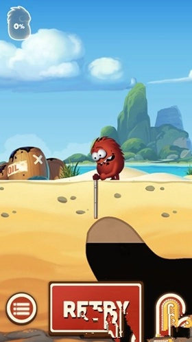 1、在《采油小怪2》这款游戏里,当小怪物登场时,它的手中会握着一根能够伸缩的导管,这导管的特性有点类似孙悟空的如意金箍棒。我们操控角色移动到石油所在位置的正上方后,只要按住屏幕上出现的对应按钮,就能让这根导管伸长。