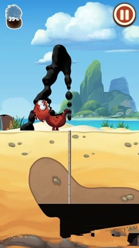 3、如果导管刚好在石油中,那么就会喷出石油,我们就按住屏幕左右两边控制小怪物长大嘴去收集这些喷出的石油。