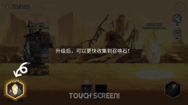 2、轻点屏幕就能召唤角色。打败怪物,推毁敌方塔楼,寻觅独一无二的神器。