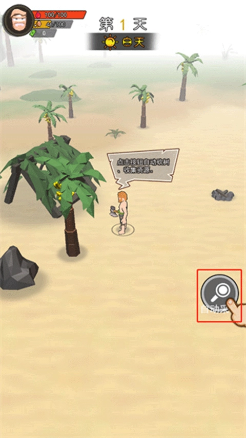 4、在这里我们要做的就是不断地去获取小岛资源保证自己能够存活下来