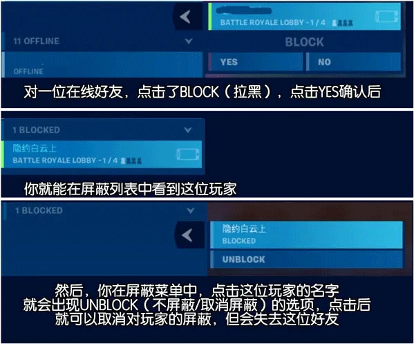 屏蔽:被拉黑的玩家,会在这里显示