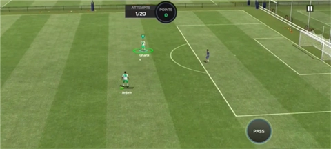 2、进入游戏后,开始将会出现一段教程,例如你想传球就需要点击PASS按钮,点击THROUGH按钮,给你的队友传球。