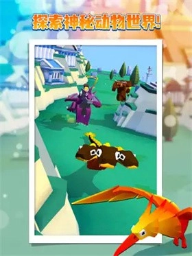 3、沿途还会遇到鸵鸟和天马,只要快速奔跑就能跳上它们的背。每局都有规定的抓捕数量,要是能骑着它们抵达终点,就能和它们合影留念,并且成功驯服它们。