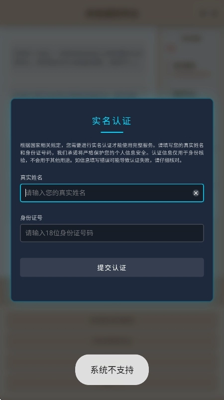 1、打开游戏后需要先实名认证才能够开始游戏。
