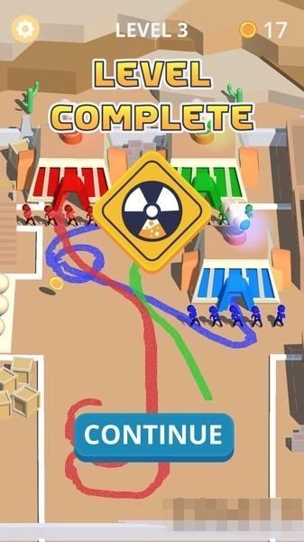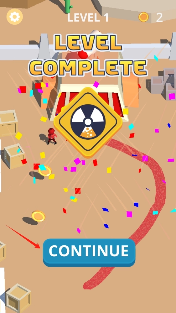 2、关卡完成后,点击CONTINUE,进入下一关,继续新的挑战,争取更好成绩,点击到下一关当中。
