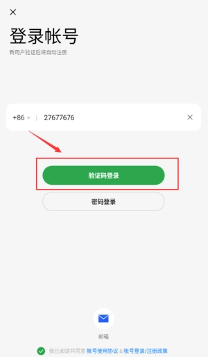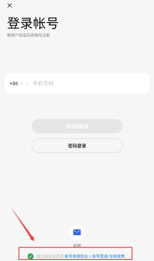 3、勾选红框协议选项,同意条款后继续登录操作。
