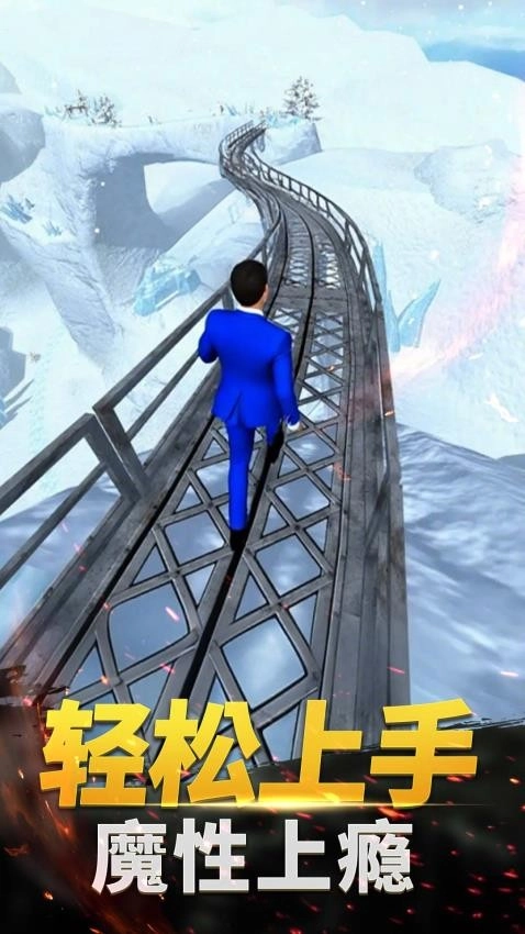 1、开始游戏后熟悉触屏操作,控制角色稳步登山,注意调整节奏避免失误。