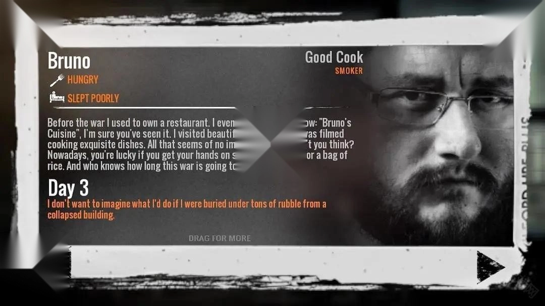 2.玩家扮演的不是士兵,而是平民,在一个饱受战争困扰的城市中生存。