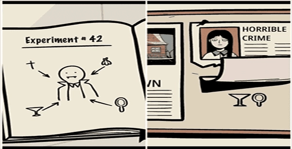 14、留意留言板与笔记本上的提示信息,之后用玻璃碎片划开沙发垫下方的沙发,取出里面的「十字架」。随后把红酒和酒杯组合起来,再用螺丝刀拧掉吸血鬼画像上的螺丝,接着按照留言板上的顺序,依次将十字架、红酒、大蒜和镜子对吸血鬼使用。