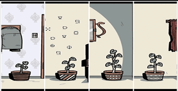 5、留意房间里四个位置花盆上的图案,再数清楚每个花盆上叶子的数量,之后按照笔记本上所记的花盆顺序输入密码(密码可能会有变化),打开盒子并取走里面的「火柴」。