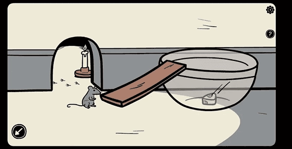 6、把火柴和蜡烛组合起来放进老鼠洞,再用雨伞从洞里取出「电源线插头」。之后用绝缘胶布把电视机的电源线修好,打开电视机,将录像带放进录像机并按下播放键。