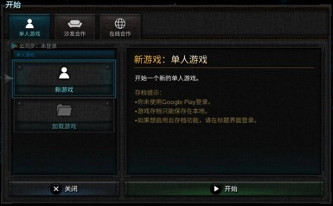 游戏一共设有三种模式,即单人游戏、沙发合作和在线合作,并且支持通过谷歌账号实现云存档功能。