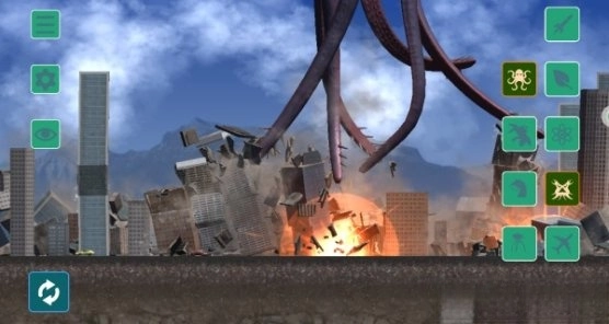 2.操作界面右方有很多的选项,你可以随意的点击,这一次的是怪兽造成的灾害。