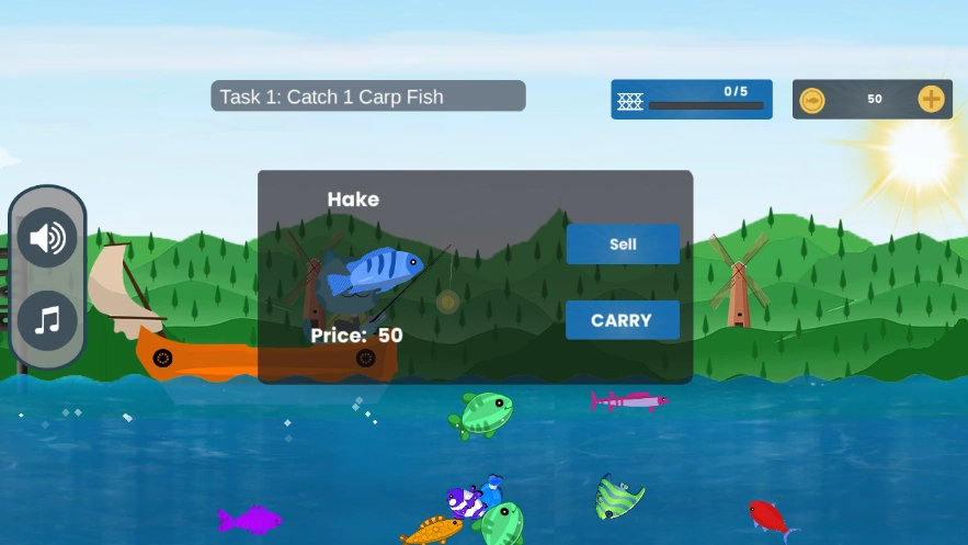 4、钓上来的鱼可以选择直接售卖或者带回家;