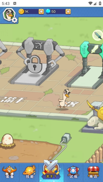 3、十分卡通的游戏题材,以大鹅为主要角色,打败来袭怪物。