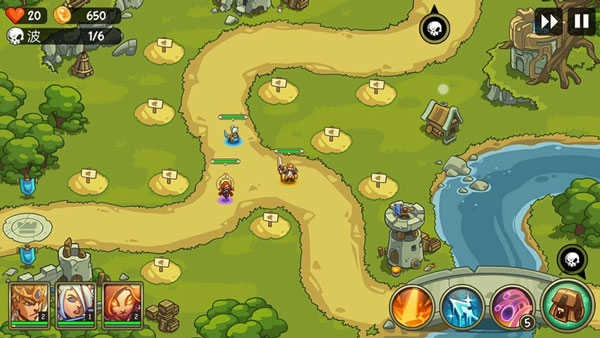 进入战斗后,我们三位英雄身旁的土包就是建造防御塔的指定位置。操作很简单:点击土包,选择想要建造的防御塔类型,再点击确认按钮就能完成创建。要是金币充足,还可以升级防御塔——等级越高,它的攻击伤害就越可观。要是金币不太够用,那就优先升级那些位于路口前端、最先与敌人交锋的防御塔。