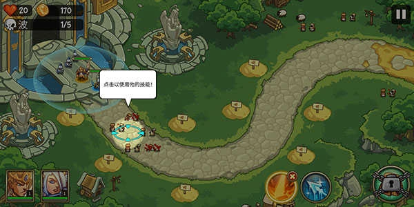 1、进入游戏后我们点击右下角的图标可以使用英雄的技能。