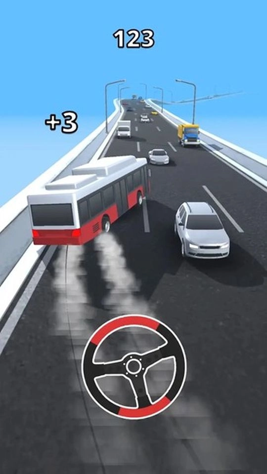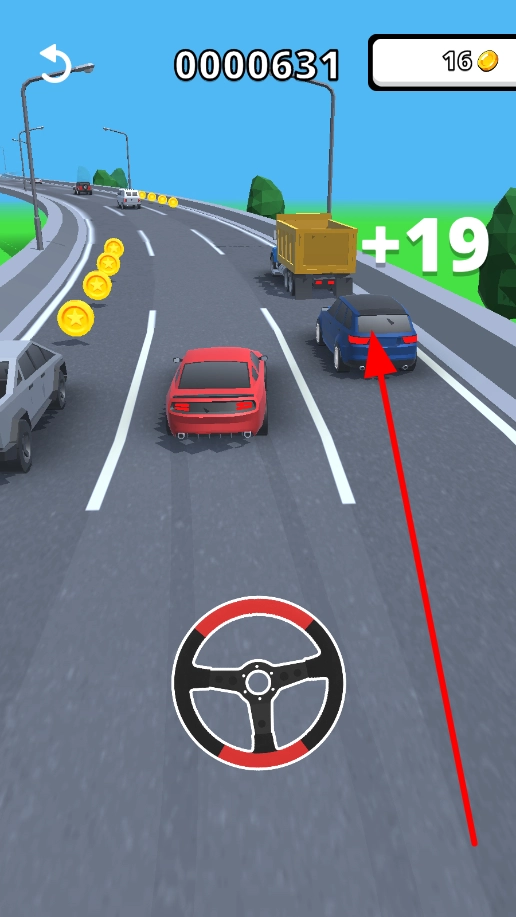 1、通过滑动屏幕操控车辆左右移动,借此避开前方及周围的车辆,保障行驶安全,从而为持续获取分数与金币创造有利条件。