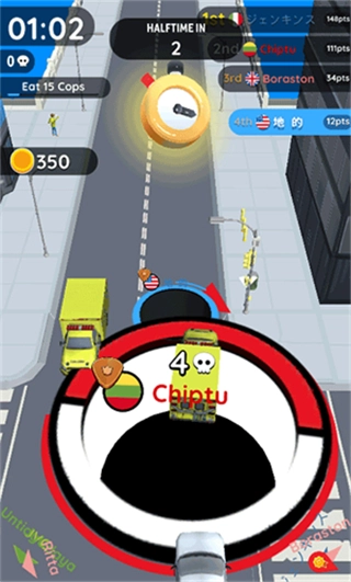 3、随着黑洞逐渐变大,尝试吞噬路灯等更大的物体,快速增加分数和扩大黑洞体积,注意躲避体积过大难以吞噬的物体。