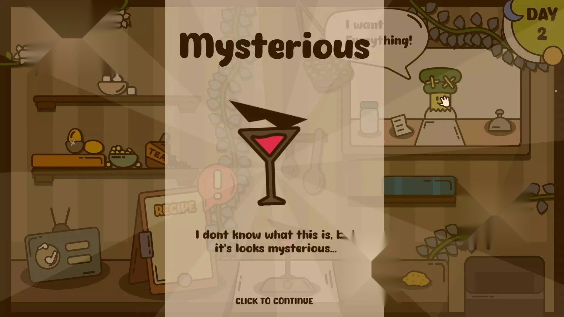 4、完成所有订单后一天便结束,这时玩家可消耗金币解锁更多配料,用于制作饮品。
