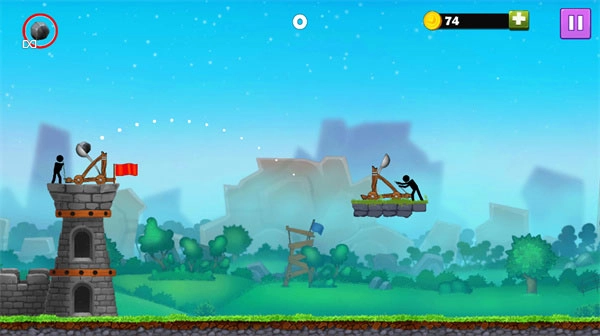 火柴人投石机(The Catapult)是一款投掷射击类游戏,采用2D横版画面呈现。游戏中,玩家将操控火柴人操作投石车展开挑战,需通过不断调整射击的角度与力度,向对手投掷石块,只要击溃敌人的攻城塔即可获得胜利。
