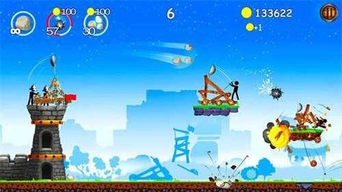 4、当石弹命中敌方火柴人、摧毁敌方建筑等目标后,就能获取金币之类的奖励,借助这些金币,玩家可以在游戏商店里购买投石机的升级道具,以此增强后续战斗中的作战能力。
