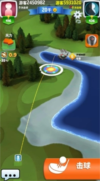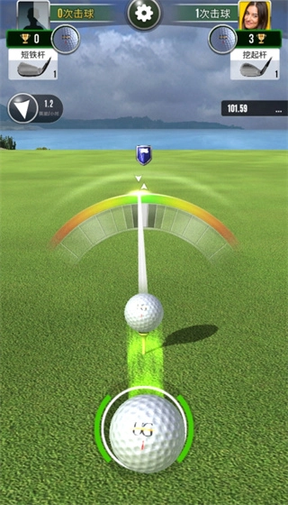 3、最后只需通过简单易上手的操作,以最少的杆数更快速高效地率先将球击入洞内。