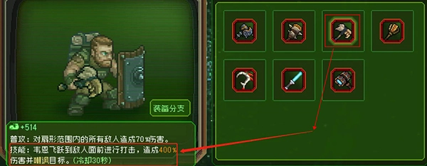 技能改造:对击中敌人造成减速或对击中敌人附加嘲讽。嘲讽能够更好的保护队友,但对于怪物数量比较多的关卡来说,减速更加有用。玩家可以根据关卡情况进行调整。