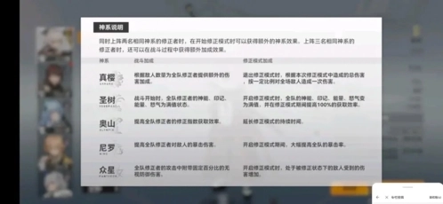 角色的神系划分,严格来讲不算传统意义上的属性——既不存在属性克制关系(毕竟敌人本身没有属性设定),也不像《原神》那样有元素间的相互反应机制,它更像是对角色的一种单纯归类。目前游戏中的神系共有五种,分别是对应式神的真樱、对应妖精的圣树、对应星使的奥山、对应列王的尼罗,以及对应命者的众星。其中真樱、圣树、奥山、尼罗大致可对应日本神话、印度神话、北欧的奥林匹斯山神话与埃及神话体系,而众星则没有明确对应的神话背景,属于“其他”类别。另外有消息称后续会推出中国神系(当前时间为4月30日,若该神系上线,我会在下方补充更新)。